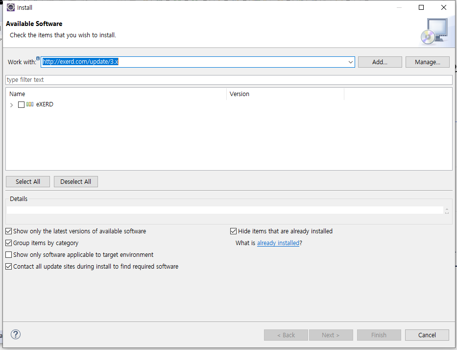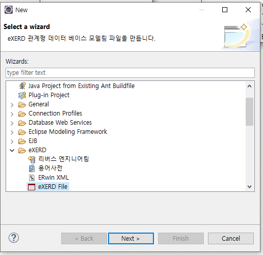 - 그러면 정상적으로 eclipse exERD plugin 이 설치가 완료된다.