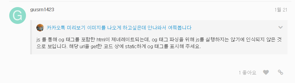 - SNS 공유하기에 사용되는 이미지를 테스트하기 위해 우리는 운영서버에서 테스트가 가능하다.