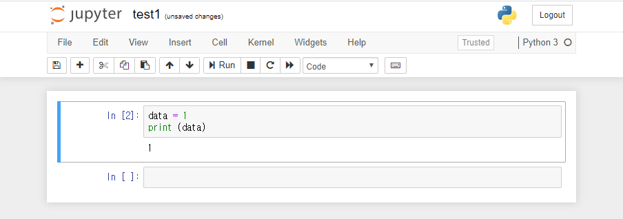 위의 그림처럼 파이썬 코드를 입력할 수 있으며, Run 버튼이나 Shift + Enter 를 이용하면 컴파일하여