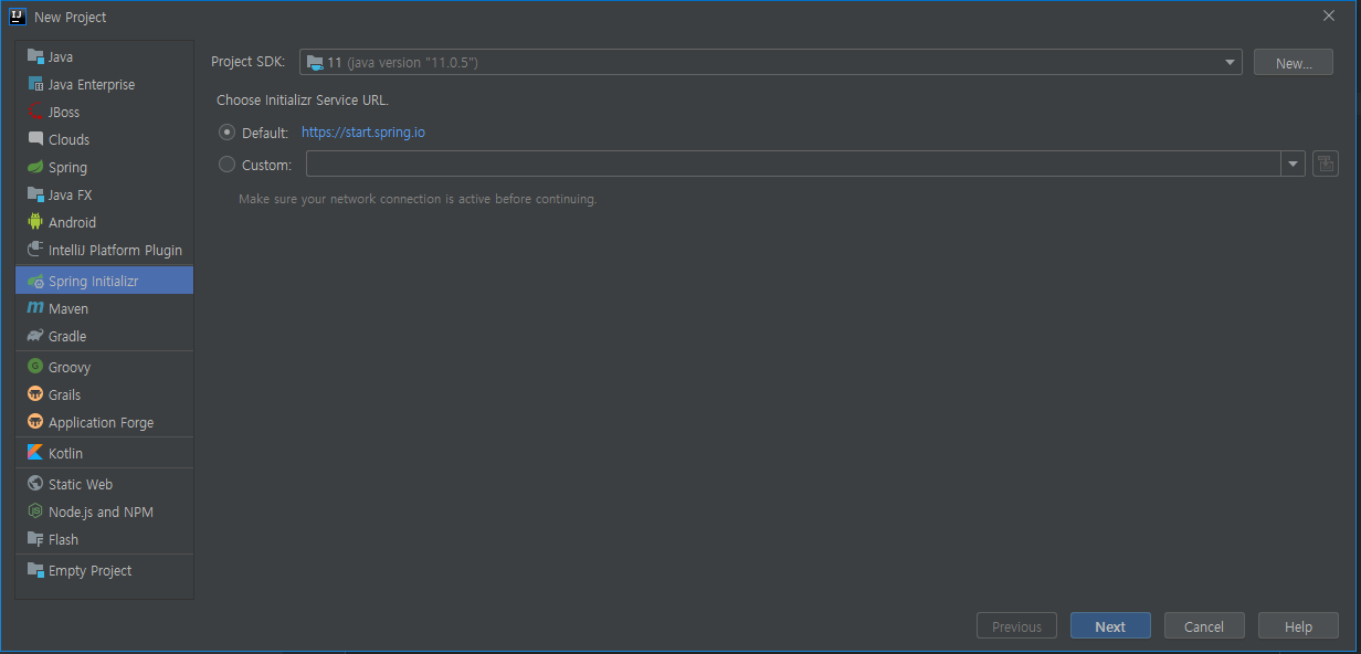 1. 인텔리제이 -> New Project의 Spring initializer 를 통해 프로젝트를 생성한다.