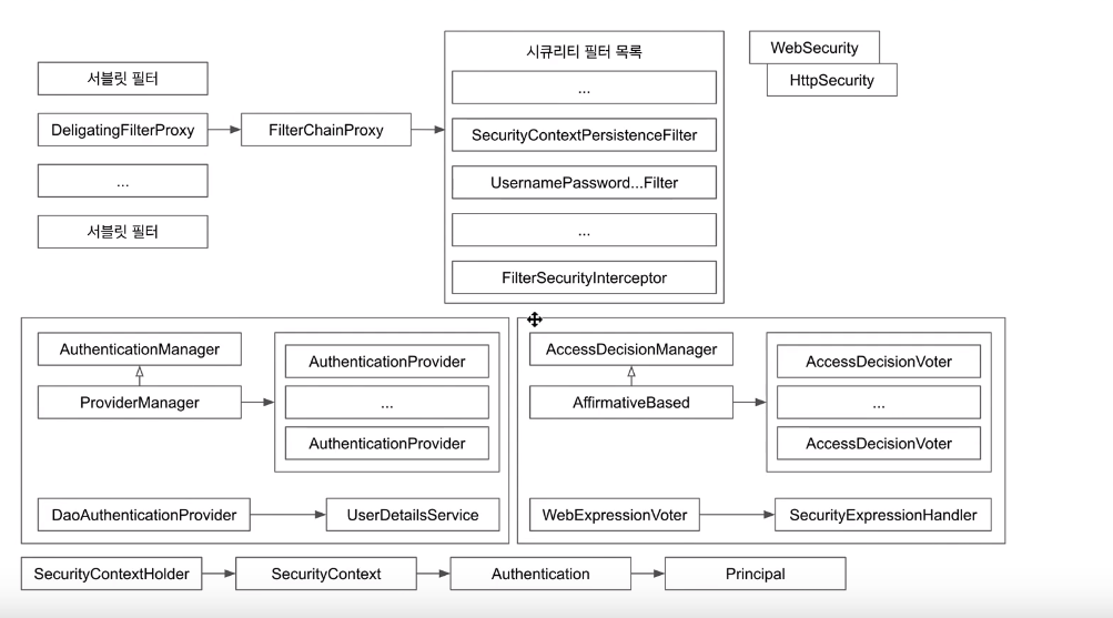 4. 위의 필터들이 사용하는 주요 객체들이 있는데, 이 중 인증에 관련된 객체가 AuthenticationManager,