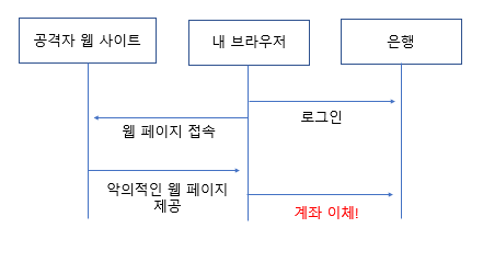 인증된 유저의 계정을 사용해 악의적인 변경 요청을 만들어 보내는 기법