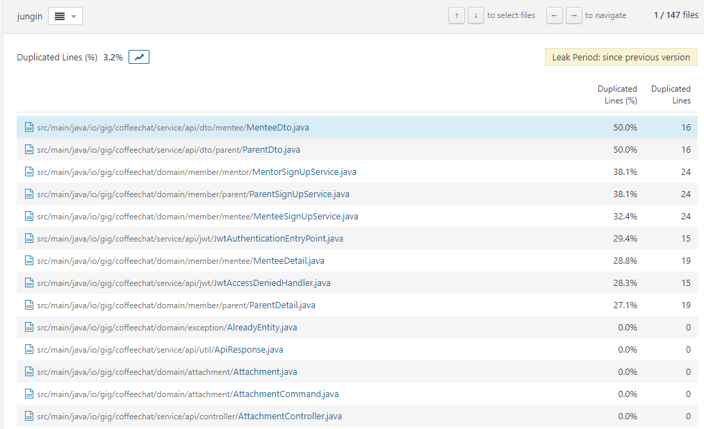 저의 프로젝트 같은 경우 Dto 를 도메인별로 만들어둔 경우가 있는데, 이러한 부분들이 중복된 코드로서 많이 발견이 되네요