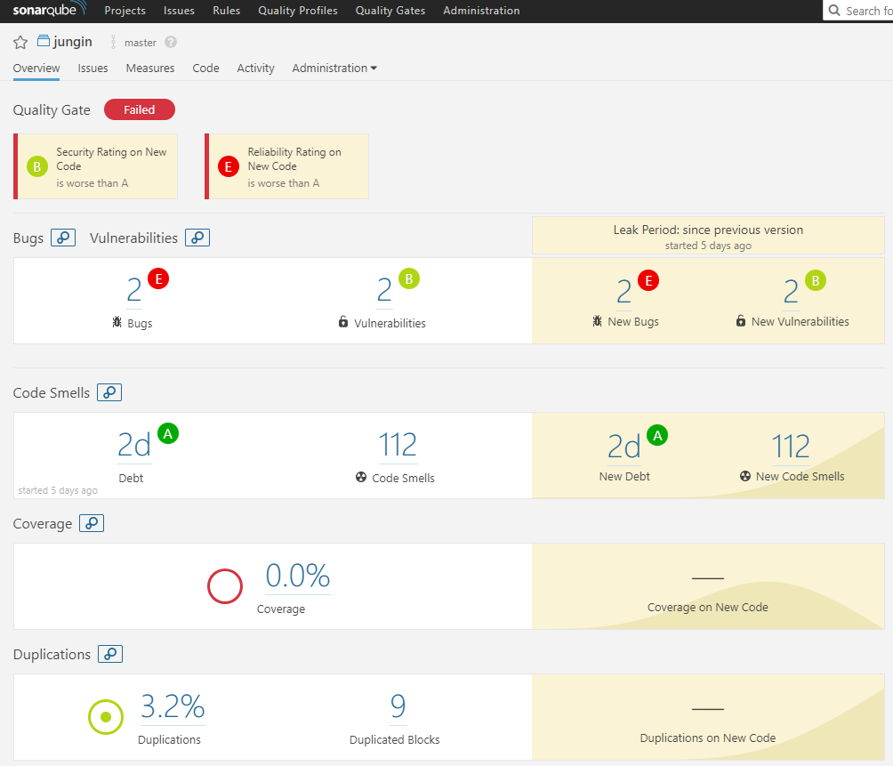 SonarQube Project Dashboard