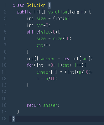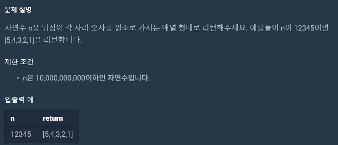 [Java] 프로그래머스 레벨1 자연수 뒤집어 배열 만들기 본문